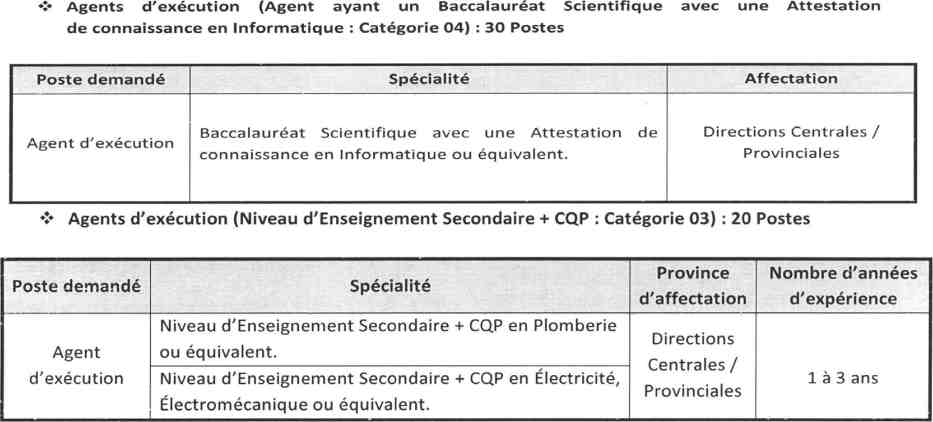 Dans le cadre de l’expansion de ses programmes et du renforcement de ses structures centrales et provinciales, la société organise un recrutement de 170 postes répartis comme suit :