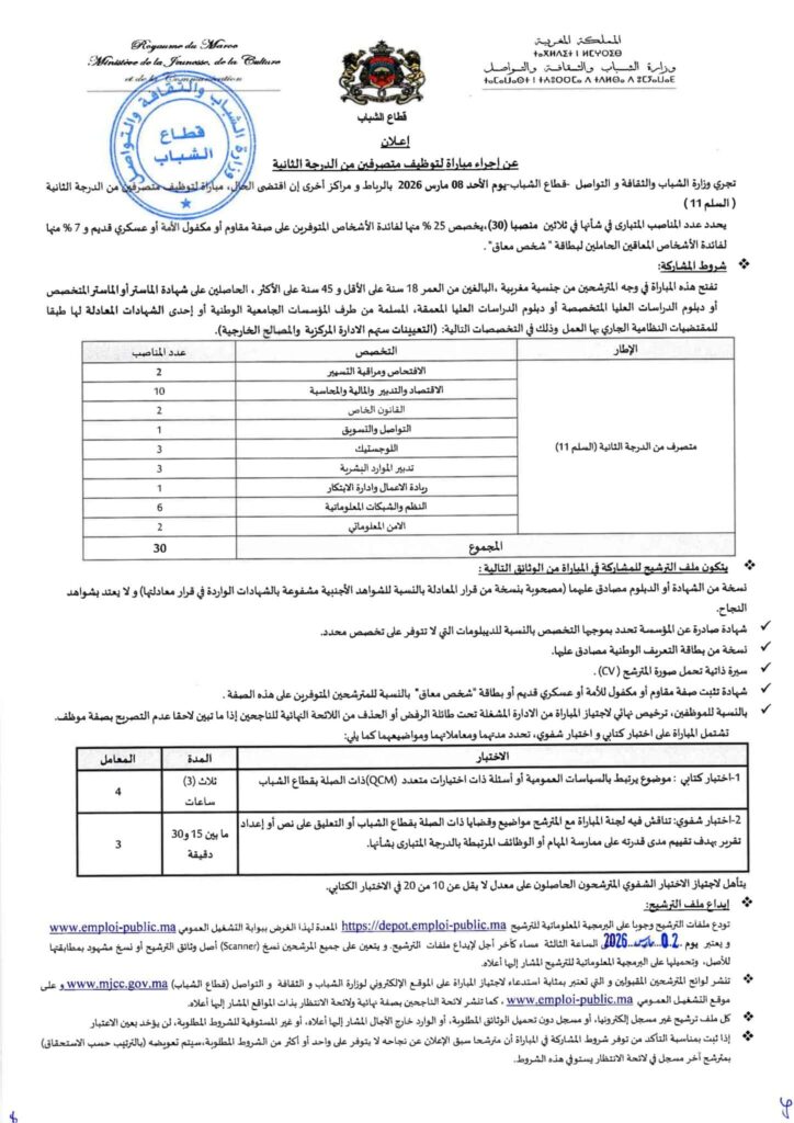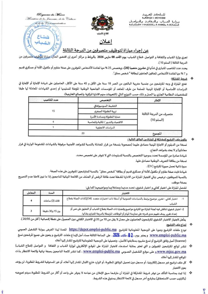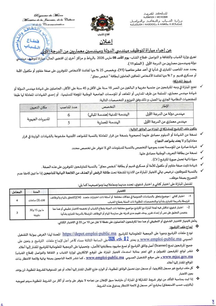 Le Royaume du MarocMinistère de la Culture, de la Jeunesse et des SportsConcours de recrutement